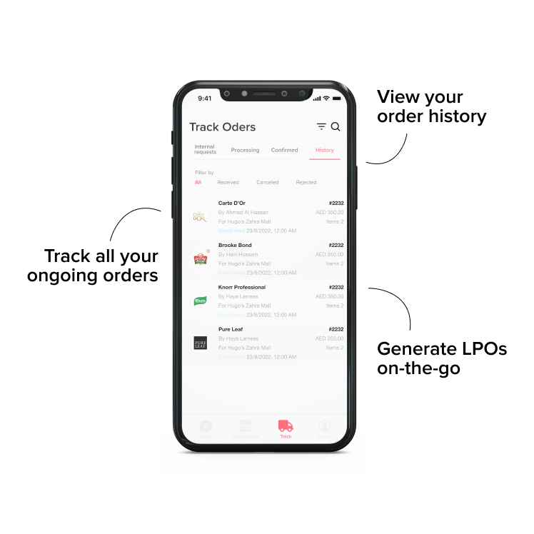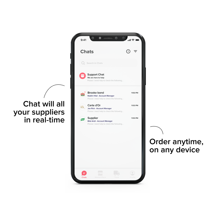 يتيح لك التطبيق التواصل مع جميع مورديك، وشراء الطلبات وتتبعها، واستكشاف السوق، وإصدار أوامر الشراء المحلية في مكان واحد وبكفاءة لا نظير لها!